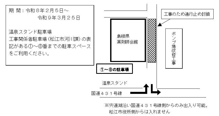 【ご来館者様へ】松江市ポンプ場改修工事に伴う会館駐車場の移動について